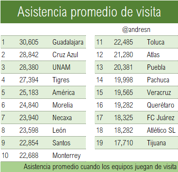 Asistencia promedio de visita en ligaMx